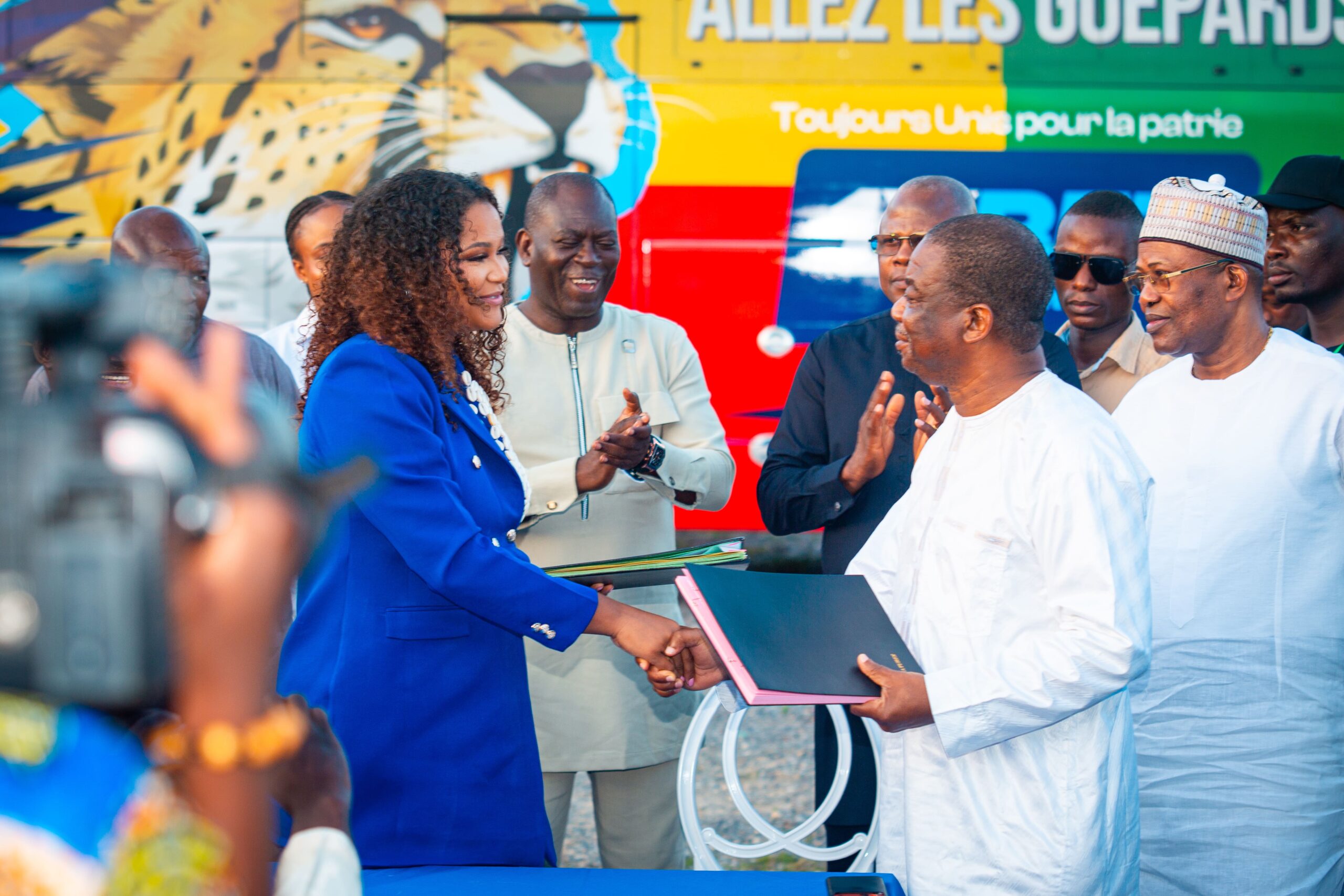 1XBet a remis, le vendredi 14 novembre 2025, un bus neuf de 53 places à la Fédération béninoise de football. C’était à l’occasion de la signature officielle d’accord de partenariat entre les deux entités. La cérémonie, organisée à Canal Olympia Cotonou, a réuni des membres du gouvernement, des acteurs du sport et de nombreux invités.