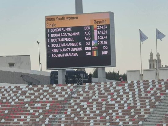 C’est la jeune athlète béninoise Rufine Sonon qui a offert au Bénin, sa toute première médaille d’or. Elle a remporté l’épreuve du 800 mètres avec un chrono de 2 :14 .03.