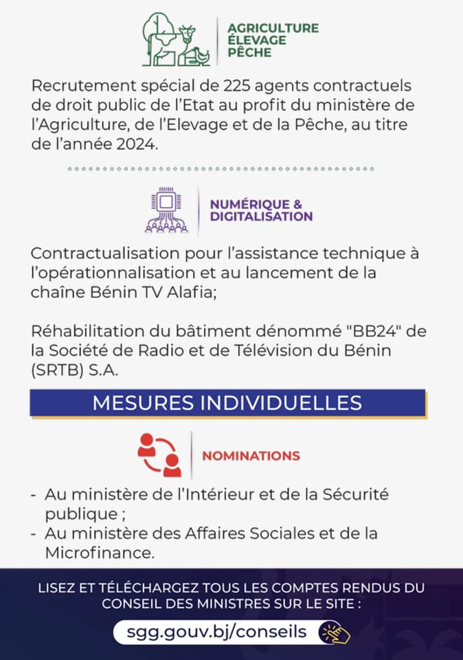 Bénin : grandes décisions du conseil des ministres du 26 juin 2024