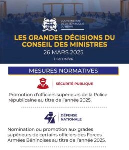 ActuPolitique Bénin : Voici les grandes décisions du conseil des ministres de ce 26 mars 2025 By Rédaction Last updated Mar 26, 2025 Share les grandes décisions du conseil des ministres de ce 26 mars 2025 ActuConseil des ministresGrandes décisionsMercredi 26 mars 2025Politique Share FacebookTwitterGoogle+ReddItWhatsAppPinterestEmail