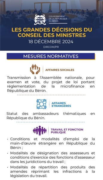 Bénin : Voici les grandes décisions du conseil des ministres de ce mercredi 18 décembre 2024