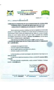 Pour l’obtention des accréditations nécessaires à la couverture médiatique des élections au Bénin, la HAAC invite les journalistes et organes de presse internationaux à se conformer aux dispositions en vigueur.