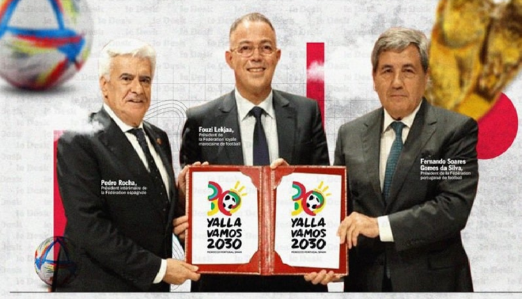 Intitulé « Yallah Vamos 2030 », le logo officiel de la Coupe du Monde 2030 a été révélé à la Cidade do Futebol de la Fédération portugaise ce mardi 19 mars 2024. C’était lors de la cérémonie de candidature conjointe du Maroc et de l’Espagne, où on pour remarquer la présence de Fouzi Lekjaa, président de la Fédération royale marocaine de football (FRMF).