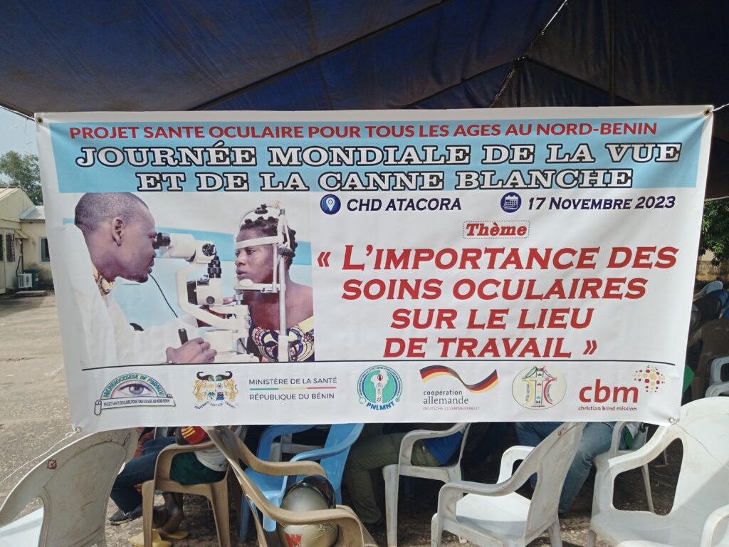Après le Borgou, l’Alibori et la Donga, c’est à Natitingou au CHD du département de l’Atacora que l’équipe a posé ses valises pour offrir des séances de consultations aux populations. La journée mondiale de la vue et de la canne blanche, vise à sensibiliser les populations sur les facteurs de risque associée aux affections oculaires afin de permettre aux populations de jouir de la belle santé oculaire d’où le thème : « l’importance des soins oculaires sur les lieux de travail ». Pour le père Ernest DEGBUENONVO, Vicaire général et coordonnateur des services de santé de l’archidiocèse de Parakou, le projet santé oculaire pour tous les âges est financé par le Ministère Fédéral Allemand du Développement et de la Coopération Economique et Christian Blind Mission (CBM) qui est un partenaire historique de l’archidiocèse de Parakou dans la lutte contre la cécité évitable au Bénin depuis plus de 20 ans. A travers ce projet, le CHD Atacora a bénéficié depuis janvier 2023 de la rénovation complète du service d’ophtalmologie, d’une dotation complète en équipement de pointe et en médicament et d’un médecin ophtalmologiste. Les populations, toutes catégories confondues sont sorties massivement pour répondre à cet appel de l’archidiocèse de Parakou, pour se fait consulter. Avant cette étape de consultation, une séance de sensibilisation à leur endroit a été faite. Il a été question de leur apprendre comment entretenir ses yeux et les bienfaits d’une consultation ophtalmologique.
