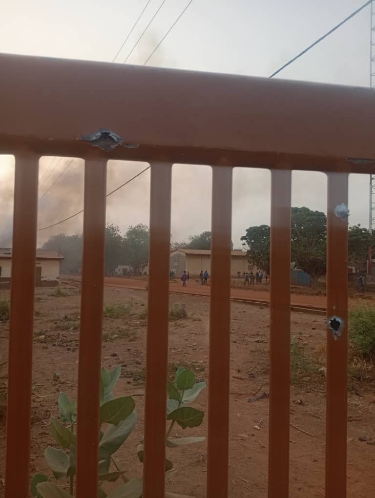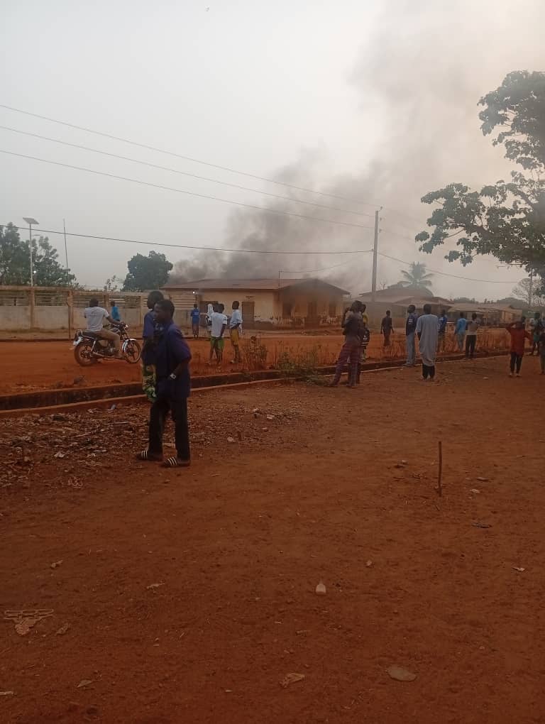 L’attaque s’est produite entre 06h50 et 07h25, alors que la ville s’éveillait. Selon des sources locales, les assaillants ont ciblé les installations de la Police républicaine. Bien que le bilan humain reste encore à confirmer par les autorités, les dégâts matériels sont déjà visibles : un ancien bâtiment du commissariat a été entièrement consumé.