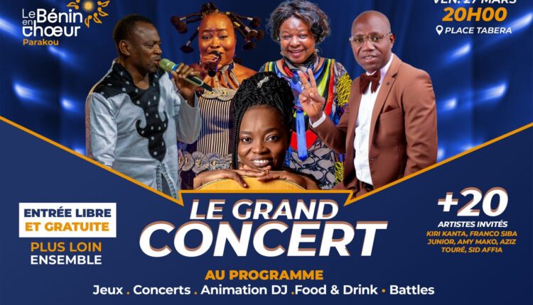 La ville de Parakou s’anime au rythme de la musique avec le concert « Le Bénin en chœur », un grand rendez-vous culturel organisé à la plage Tabera. Prévu pour ce vendredi 27 mars 2026 à partir de 20 heures, l’événement marque le coup d’envoi de deux semaines de festivités dédiées à la musique et au divertissement.