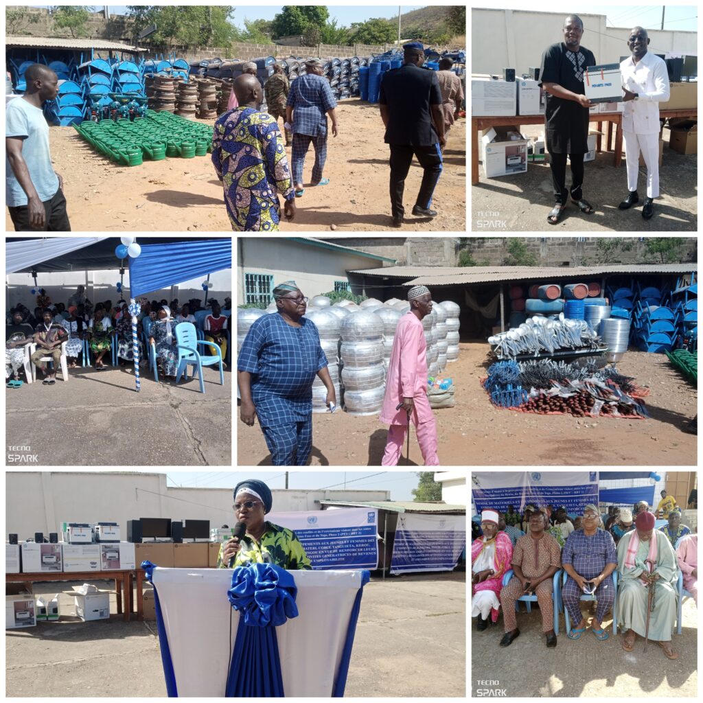 Le Programme des Nations Unies pour le développement (PNUD) a procédé le mardi 23 décembre 2025 à un double don aux communautés frontalières du Bénin, du Burkina Faso et du Togo. Les communes de Banikoara, Matéri, Cobly, Tanguiéta, Kérou, Boukoumbé, Kouandé et Natitingou ont reçu des équipements et matériels pour soutenir les jeunes et les femmes dans les domaines du maraichage, de la transformation agroalimentaire et de l’élevage.