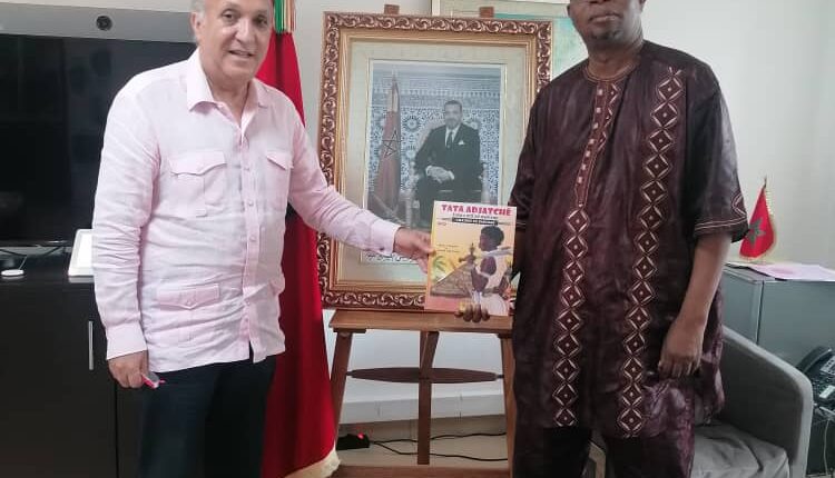 Son Excellence Rachid RGUIBI, ambassadeur du royaume chérifien du Maroc près le Bénin, a reçu la BD « Tata Adjatchè » des mains de son auteur Tiburce ADAGBE. Le doyen d’âge du corps diplomatique au Bénin a dit son bonheur de tenir en ses mains un ouvrage qui lui servira d’éclaireur dans la connaissance de la grande histoire des amazones du Danxomè. Il se dit d’autant plus heureux qu’il fut déjà un lecteur satisfait de l’essai politique Mémoire du chaudron, première entrée en librairie de l’auteur Tiburce ADAGBE.