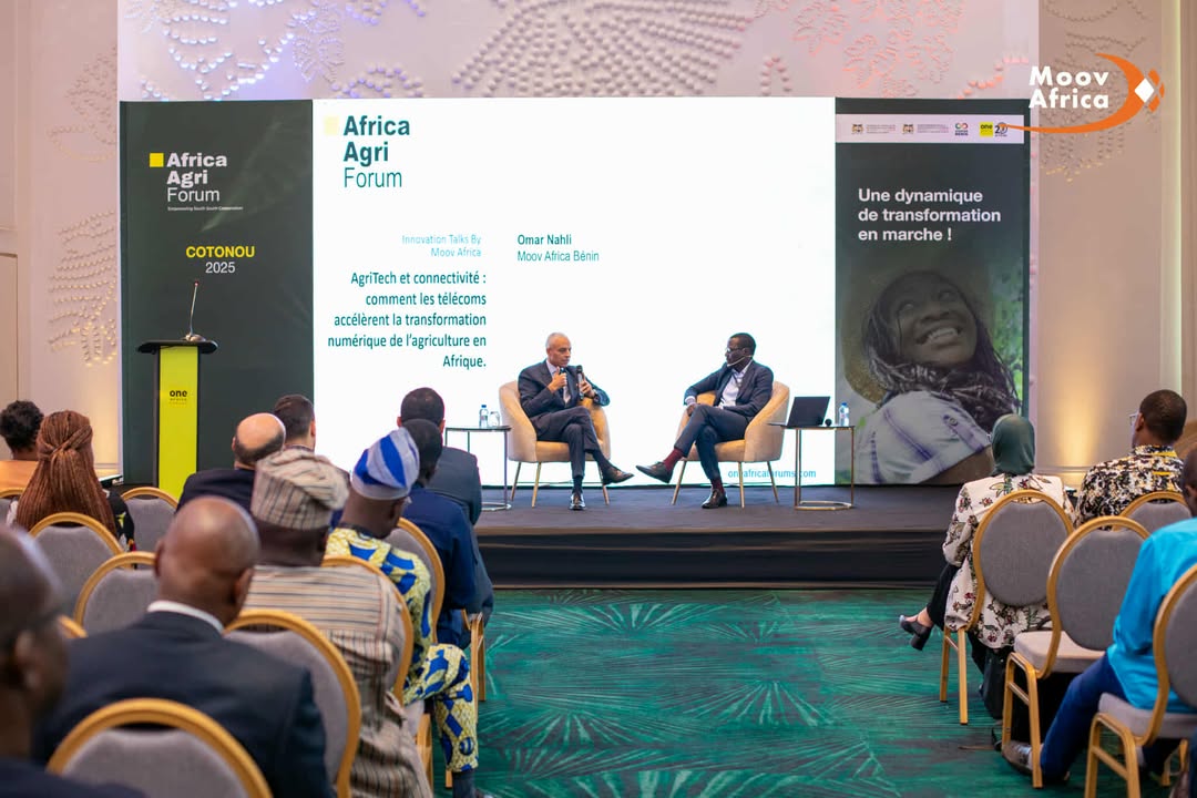 Ce vendredi 21 novembre, Omar Nahli, Directeur Général de Moov Africa Bénin, est intervenu lors d’un Talk consacré à l’AgriTech et à la connectivité. Il y a présenté la vision de son entreprise : faire de la transformation numérique un levier accessible à tous les acteurs agricoles, notamment en zones rurales.