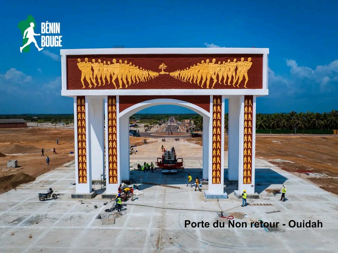 Une nouvelle Porte du Non-Retour a été inaugurée sur la plage de Ouidah, remplaçant l’ancienne version de 1995. Cette structure imposante de 16,32 mètres de haut et 23 mètres de longueur est ornée de plus de 200 sculptures façonnées à la main par l’artiste béninois Bandeira.