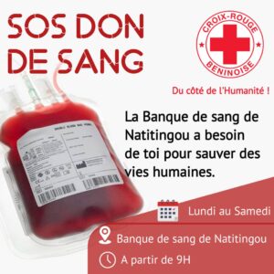 les dons se font du lundi au vendredi à partir de 9heures à la banque de sang de l’Atacora sis à Natitingou.