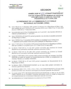 Présidentielle 2026 au Bénin : la CENA publie la liste des membres des postes de vote