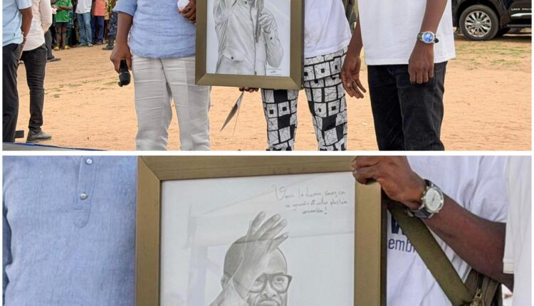 Parcourir plus de 160 kilomètres n’est pas anodin. Mais pour ce jeune talent, il s’agissait d’une démarche symbolique. Profitant du passage du candidat dans la ville de Savè, il a tenu à lui offrir une œuvre unique : un portrait réalisé avec un grand souci de détail.