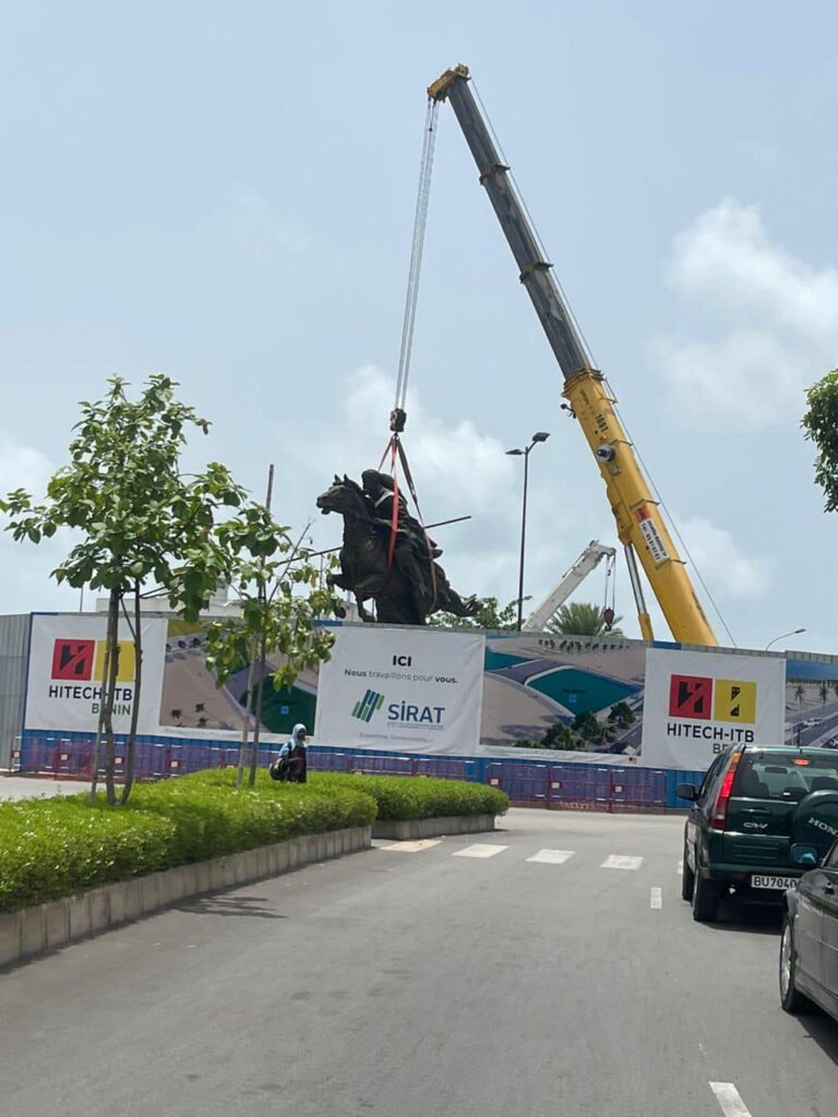 La statue Bio Guera qui se retrouvait sur le rond-point de l’Aéroport international Cardinal Bernardin Gantin de Cadjehoun est déplacée depuis ce lundi 25 mars 2024 pour être mis au carrefour Erevan. C’est le constat fait depuis ce lundi.
