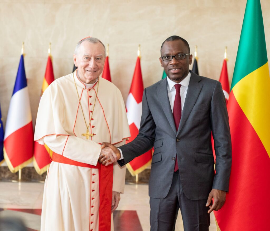 Le Cardinal Pietro Parolin, Secrétaire d’État du Saint-Siège, a effectué une visite au Bénin le 15 novembre 2025. Lors de cette visite, il a été reçu par le ministre des Affaires étrangères, Olushegun Adjadi Bakari, avec qui il a eu un entretien de près de trois quarts d’heure.